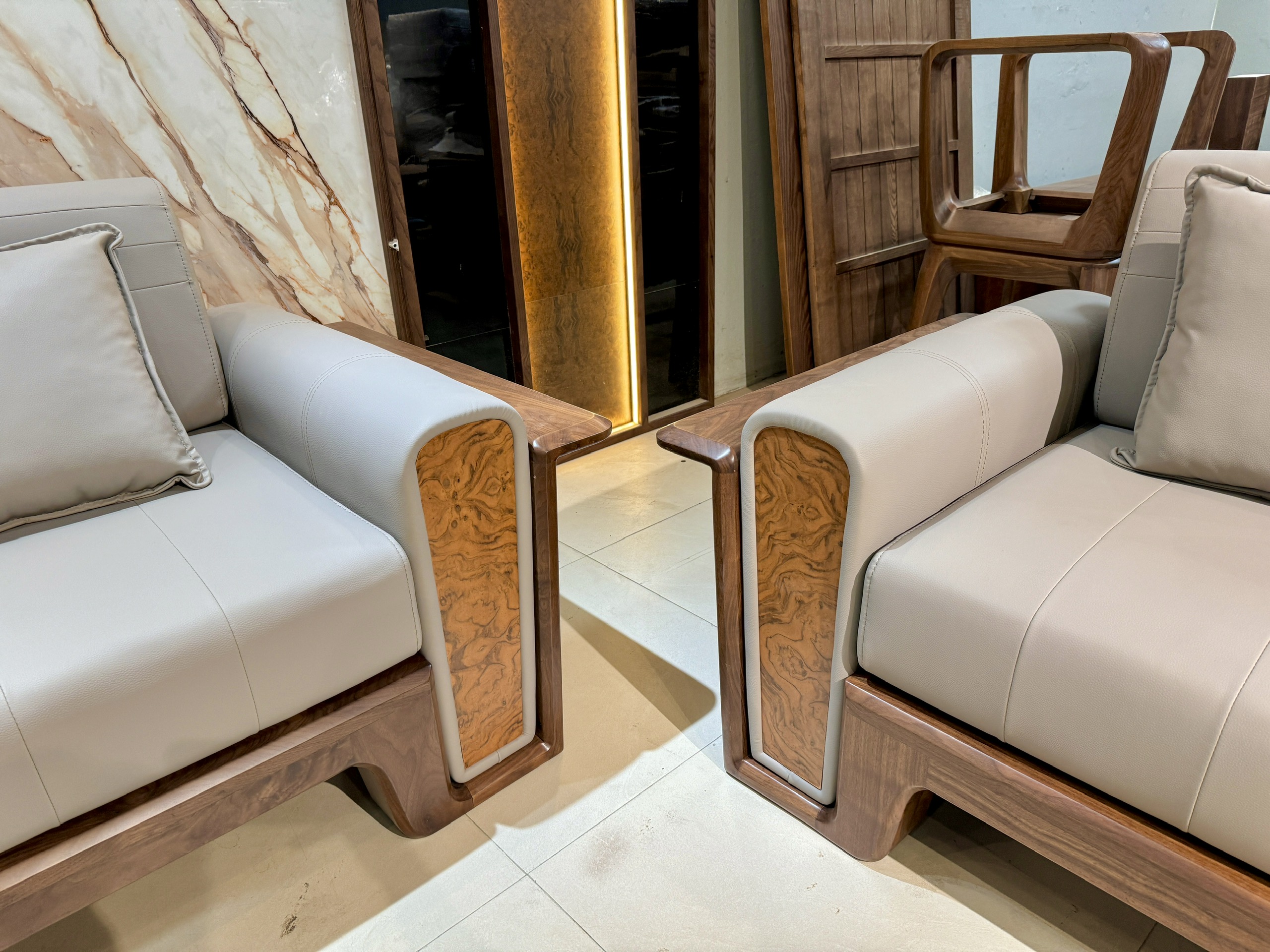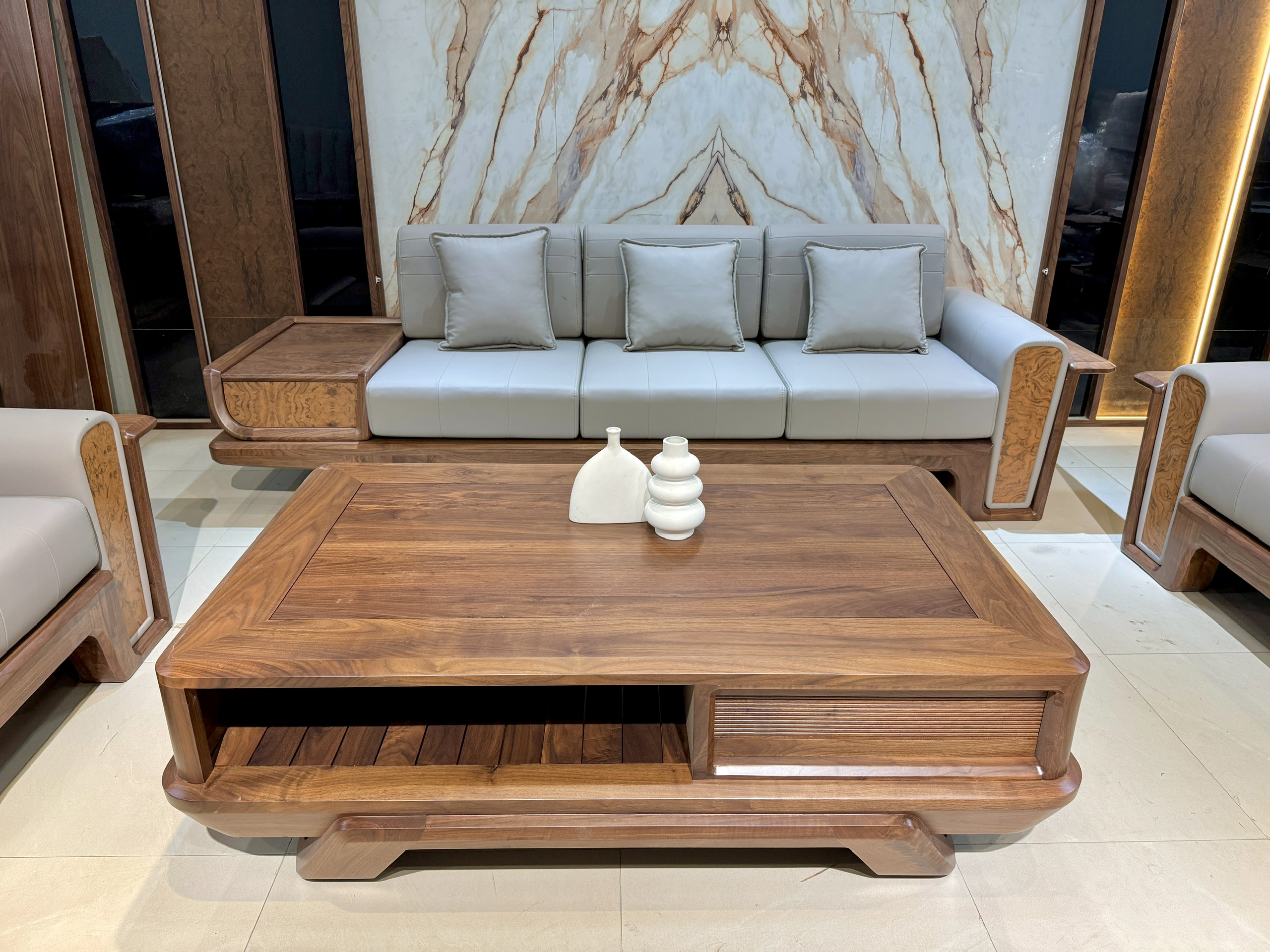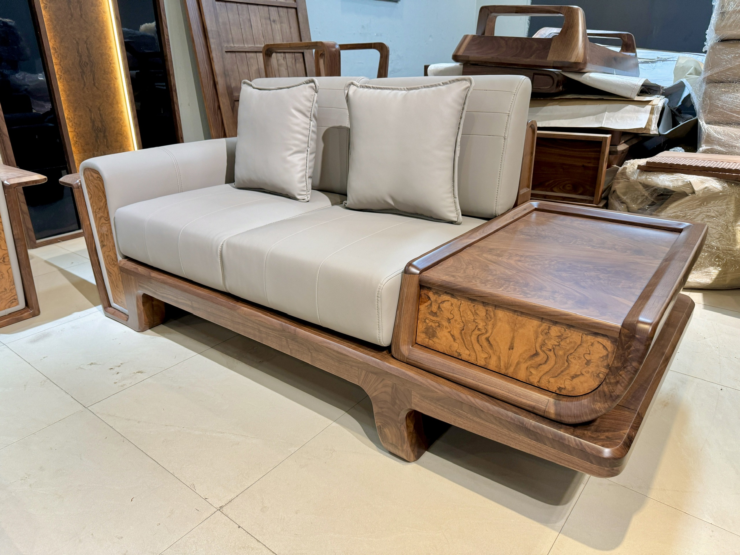 Sofa Gỗ Óc Chó – Cánh Tiên Bo Tròn